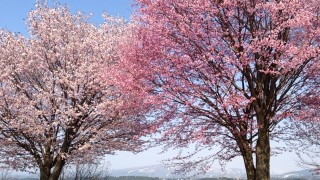 津南町、標高約500メートルにある畑に隣接の桜は今が満開で縲怩キ^_^