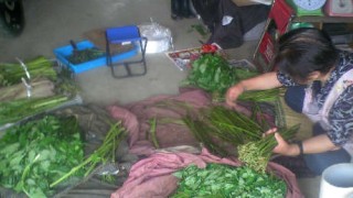 山から収穫した天然の山菜を仕分けしています。地元のおじいちゃんやおばあちゃんが頑張って収穫した天然物です。様々な山菜が混ざっており、とても苦...