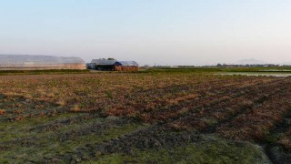 今はまださみしい畑ですが、真夏には青々と茂った茶豆畑が広がります。この畑で、お盆ころに最盛期を迎える新潟茶豆が育てられます。