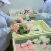 種蒔きを前にシーンと静まり返っているハウスの中。手前の木箱の中に土と籾殻を撒いていきます。