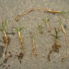 今日も田植えです。植えられた苗は、新しい根を出し、水や養分を吸い始めます。正常に新しい根が働き始めた状態を「活着した」といいます。早くたくさんの根を伸ばし、働き始めることが苗にとって大切です。根は、苗に蓄積されている力で出していきます。写真左は田植え前の苗の根の部分、右は2日後の根の部分です。自分にとってはまぁまぁという感じです。田植えの数日後に、どのくらいの根が伸びているかを確かめてみますが、どきどきの瞬間です。